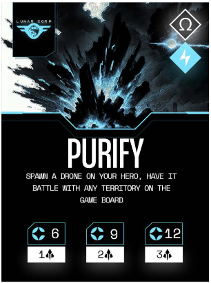 Spawn a drone on your hero, have it battle with any territory on the game board